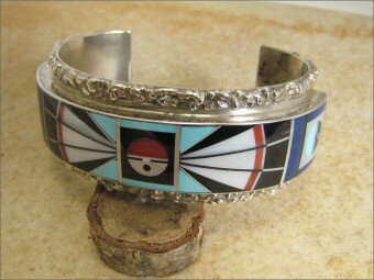 インディアンジュエリー・ズニ族 サンフェイスインレイ・ビッグサイズバングル 価格: 52,500円 レビュー評価:0.0 レビュー数:0 ズニ族が「インレイ技法」で作ったバングル。手首のゴツい方、お待たせいたしました!!日本ではめったにお目にかかれないサイズのゴージャスなバングルが入荷☆サイズももちろんゴージャス?ですがこのインレイワークも素晴らしい逸品です(*^。^*)高さを持たせた石部分、ゴツゴツしたテクスチャーのシルバー土台、どこから見ても”偉大”な存在感でガッシリ手首を美しく飾ります!!※サイズ直しはできません。かなり重みがあるので、サイズが合わなければ外れやすいことが予想されます。!!ご注意!!◎お使いになるモニターにより、石の色味が若干実物と異なる場合がございます。ご了承くださいませ。・・・・・・・・・・・・・・・・ Supported by 楽天ウェブサービス |
